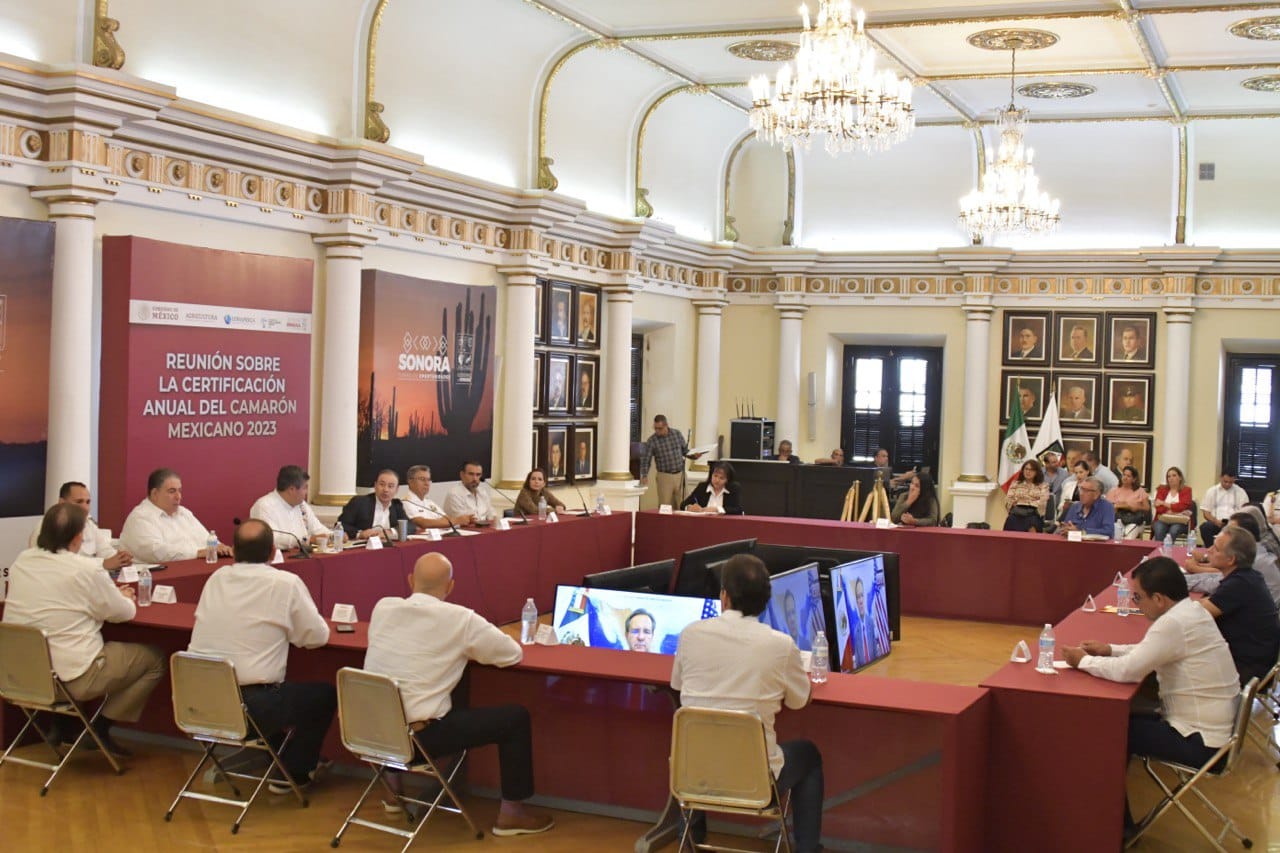 Hermosillo, Sonora; 24 de octubre de 2022.- El Gobierno de Sonora trabajará estrechamente con la Comisión Nacional de Acuacultura y Pesca (Conapesca), así como con productores, para sostener la certificación anual del camarón mexicano para su exportación a Estados Unidos, y que esta distinción sanitaria pueda trascender en el tiempo, informó el gobernador Alfonso Durazo Montaño.