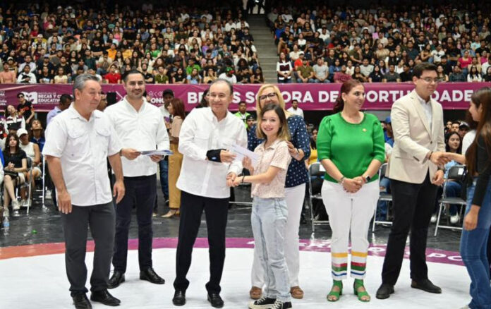 Ante miles de jóvenes, el mandatario estatal destacó que, el programa de becas para los estudiantes sonorenses, representa uno de los compromisos más importantes de su administración estatal para que los jóvenes cuenten con facilidades que les permitan concluir sus estudios y erradicar la deserción escolar.