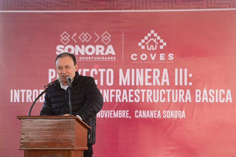 El mandatario sonorense durante su gira de trabajo por Cananea en la que supervisó los avances del Plan de Justicia, recorrió la calle Juárez rehabilitada y la modernización de la Plaza Juárez, y dio arranque al proyecto Minera III donde se está introduciendo la infraestructura básica de servicios de agua potable, alcantarillado sanitario y energía eléctrica en 323 predios para beneficio de 123 familias de trabajadores mineros, obras que forman parte de los beneficios pactados con el gobierno del presidente López Obrador para mejorar la calidad de vida de los habitantes del municipio minero.