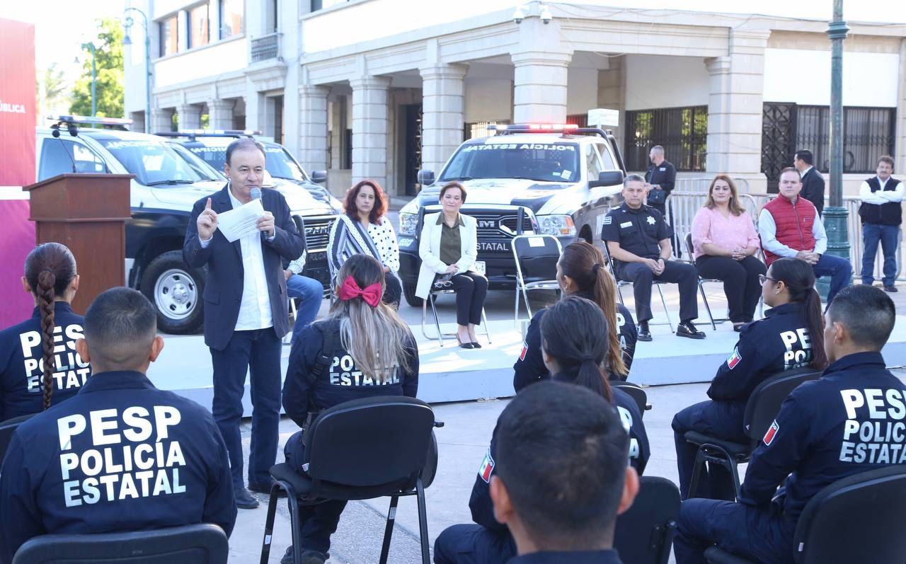Hermosillo, Sonora; 31 de octubre de 2022.- Con los ahorros generados a través del ejercicio correcto de los recursos públicos, ha sido posible dotar a la Policía Estatal de Seguridad Pública (PESP) del presupuesto necesario para que las y los agentes brinden un mejor servicio a la ciudadanía, externó el gobernador Alfonso Durazo Montaño.