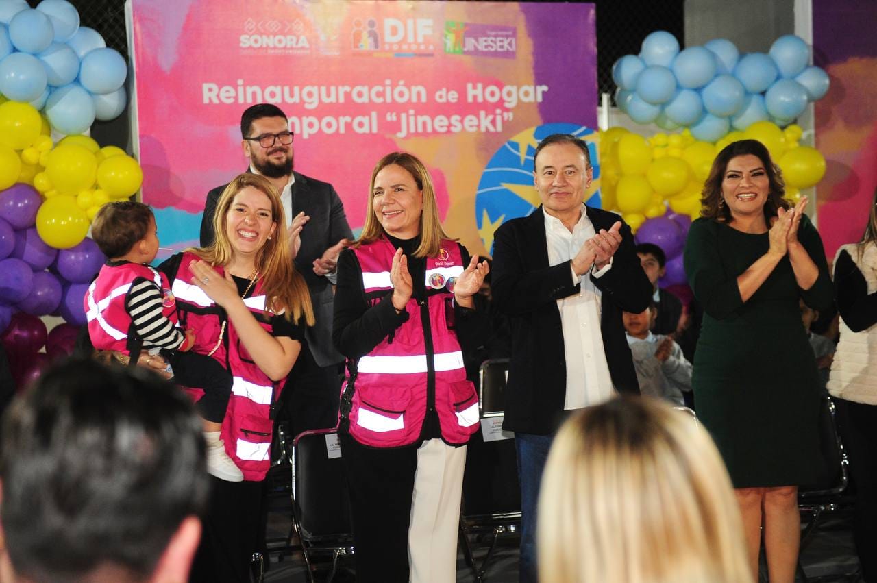 Presentes: María del Rocío Chávez Murillo, presidenta honoraria de DIF Sonora, María el Mar Durazo Chávez, presidenta honoraria del voluntariado DIF Sonora, Heriberto Aguilar Castillo, titular de la Secretaría de Infraestructura y Desarrollo Urbano (Sidur); Carolina Saavedra, directora de la casa hogar Jineseki y Axayacatl Yeomans Rosas, procurador de la Defensa de Niñas, Niños y Adolescentes.