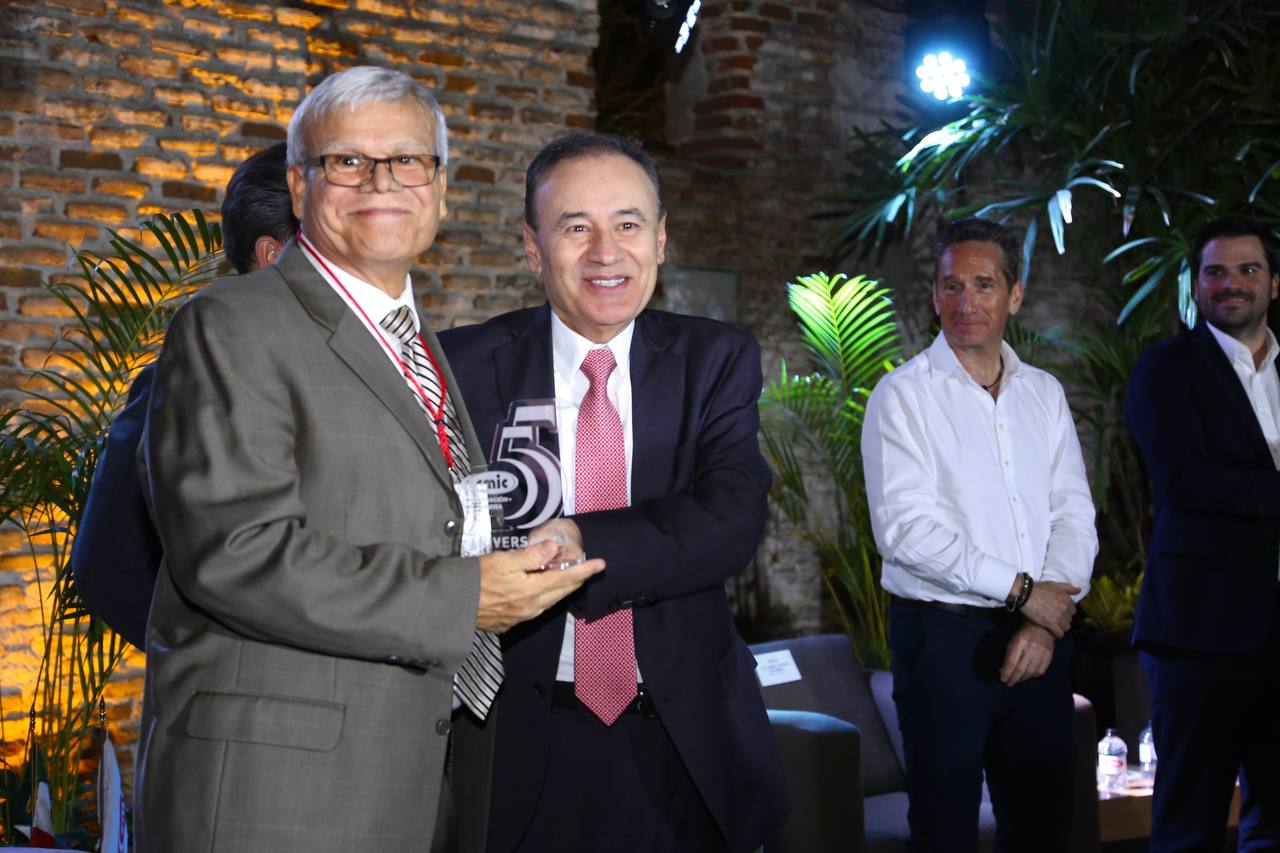 En el marco de la conmemoración del 55 aniversario de la Cámara Mexicana de la Industria de la Construcción en Sonora (CMIC), el mandatario estatal expuso los grandes proyectos que se están desarrollando en la entidad y que generarán mejores empleos para las familias, tales como la modernización del puerto de Guaymas y de los puertos fronterizos, la licuefacción de gas, la construcción de la planta solar de Puerto Peñasco, y el Plan Sonora de Energías Sostenibles, el cual permitirá que particulares puedan participar en la explotación del litio en tanto instalen su cadena de proveeduría en el estado.