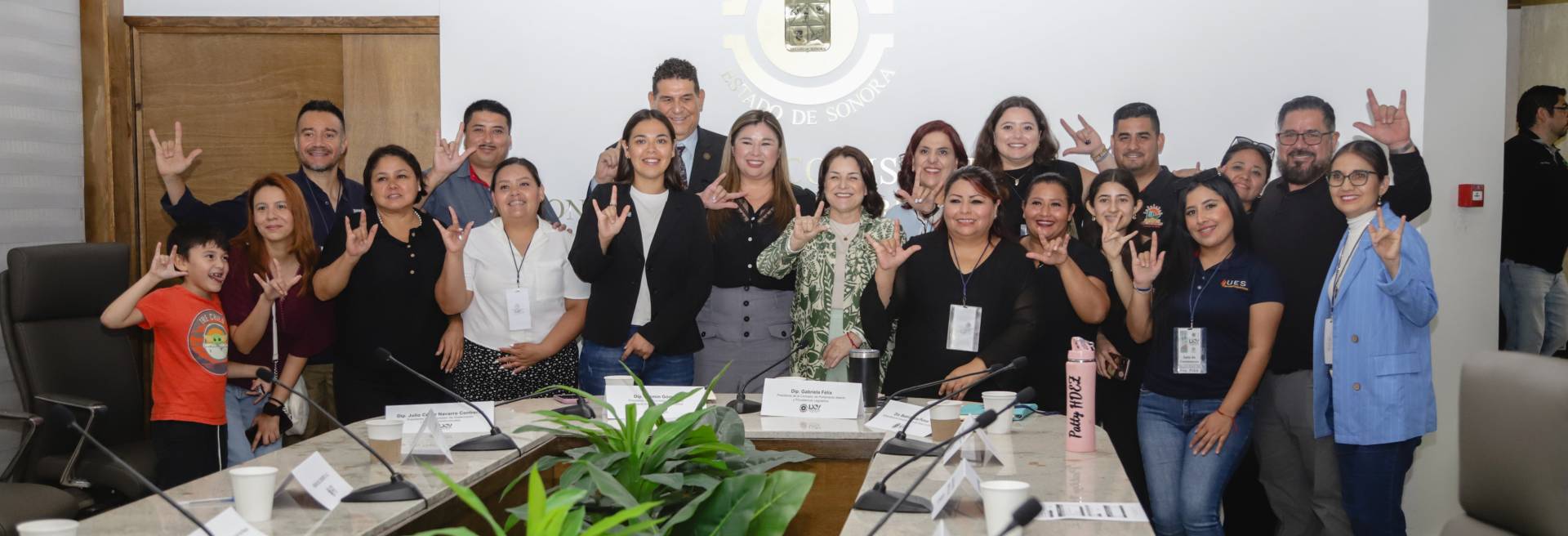 En el encuentro participaron Beatriz Cota Ponce, subsecretaria de Educación Básica; la diputada Deni Gastelum Barreras (Morena), y los diputados Julio Navarro Contreras (Morena) y David Figueroa Ortega (PVEM), así como representantes de la Asociación Sonorense de Intérpretes A.C. y Señas del Desierto.