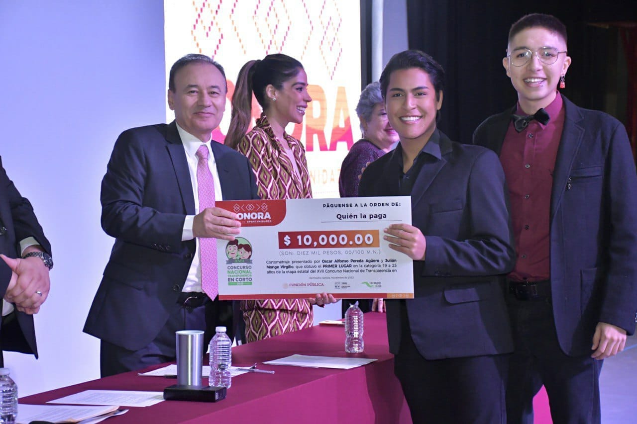 Además, entregó premios a jóvenes ganadores del 27 Concurso Nacional de Transparencia en Corto; así como reconocimientos y estímulos a personas integrantes de los Comités de Contraloría Social.
