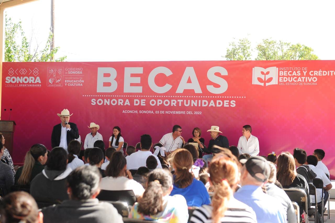 El titular del Ejecutivo, en gira por Aconchi, se reunió con estudiantes de este municipio y de San Felipe de Jesús, a quienes entregó 237 becas por un monto total de 535 mil 500 pesos. Ahí, les hizo un llamado a esforzarse, a poner todo su empeño en los años de formación que ahora viven, ya que, por medio de la preparación académica y el esfuerzo, podrán salir adelante.