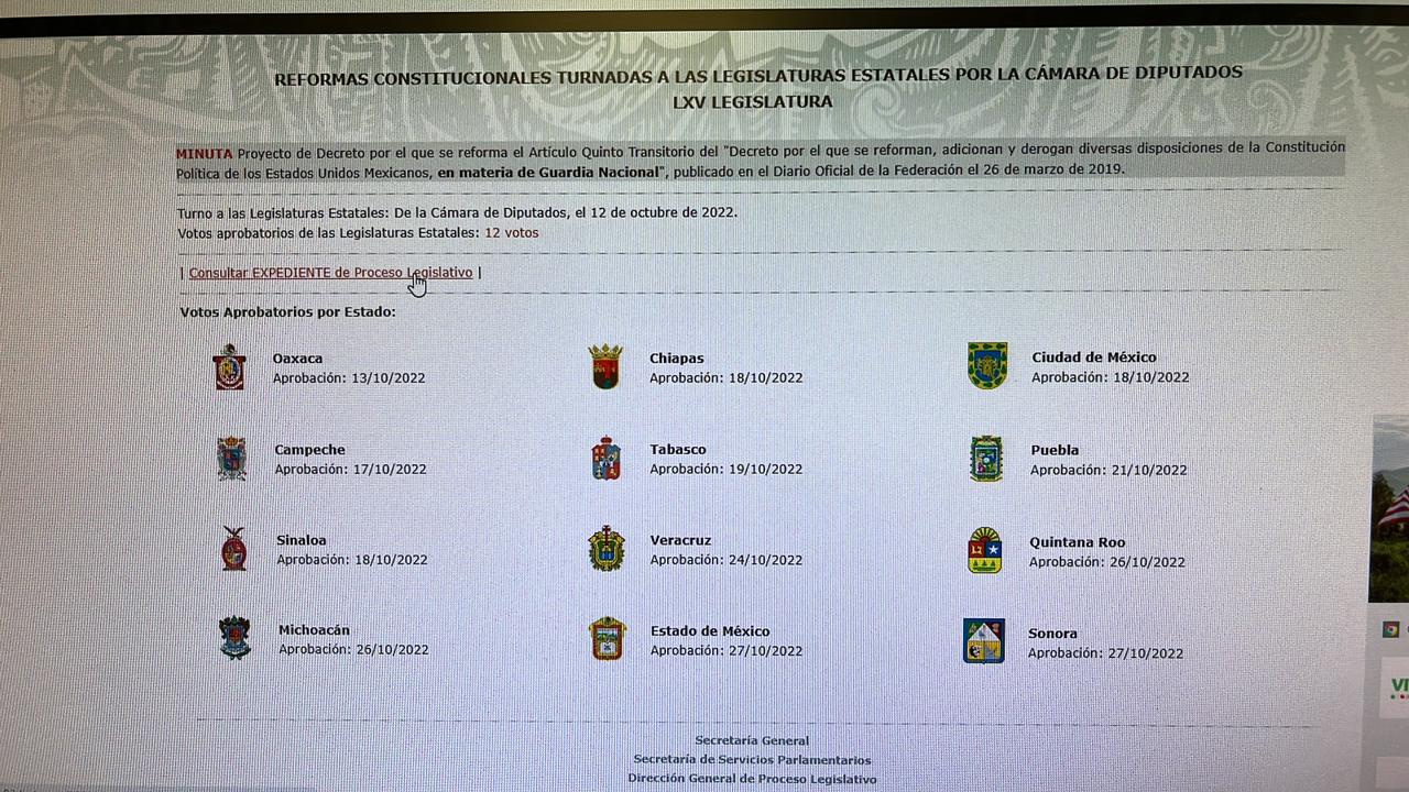 “Me siento muy contenta de que nuestra entidad sea una de las primeras en aprobar la Minuta de reforma constitucional en materia de Guardia Nacional, por eso acudí personalmente a la Cámara de Diputados, para hacer la entrega de la misma”, expresó la legisladora.