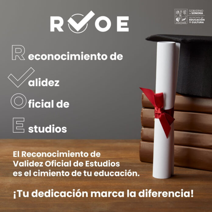 Hermosillo, Sonora.- Para orientar a la ciudadanía sobre las instituciones educativas que cuentan con el Reconocimiento de Validez Oficial de Estudios (RVOE), la Secretaría de Educación y Cultura (SEC) puso a disposición las plataformas institucionales donde pueden verificar dicha información.