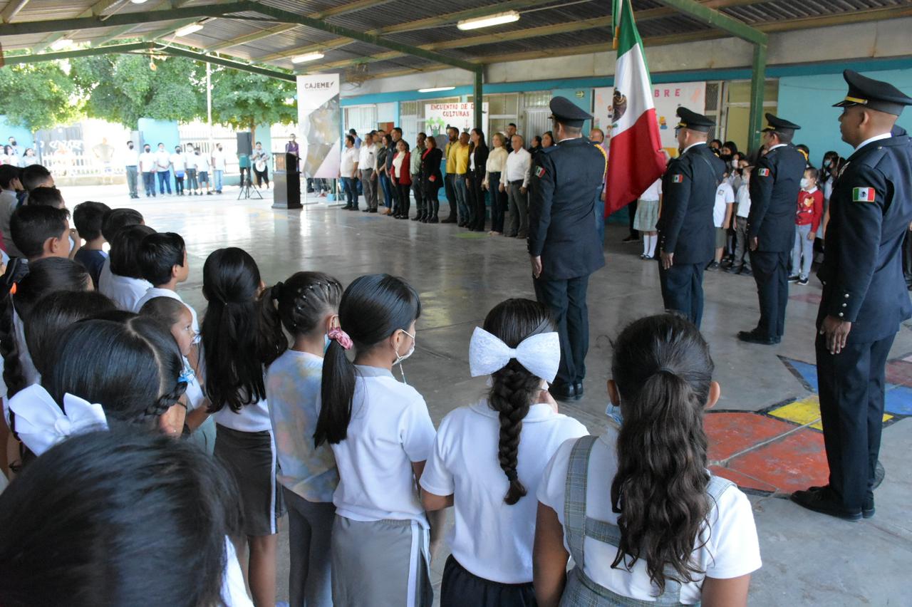 Con el propósito de mantener una relación estrecha con alumnos, padres de familia, maestros y directivos de los planteles escolares del municipio, así como ser parte activa en el fomento y difusión de valores cívicos y promover las acciones de prevención del delito, el Gobierno Municipal de Cajeme, en coordinación con el programa de Jornadas Permanentes por la Paz, llevó a cabo una ceremonia cívica a la escuela primaria José María Maytorena Tapia, ubicada en Villa Bonita.