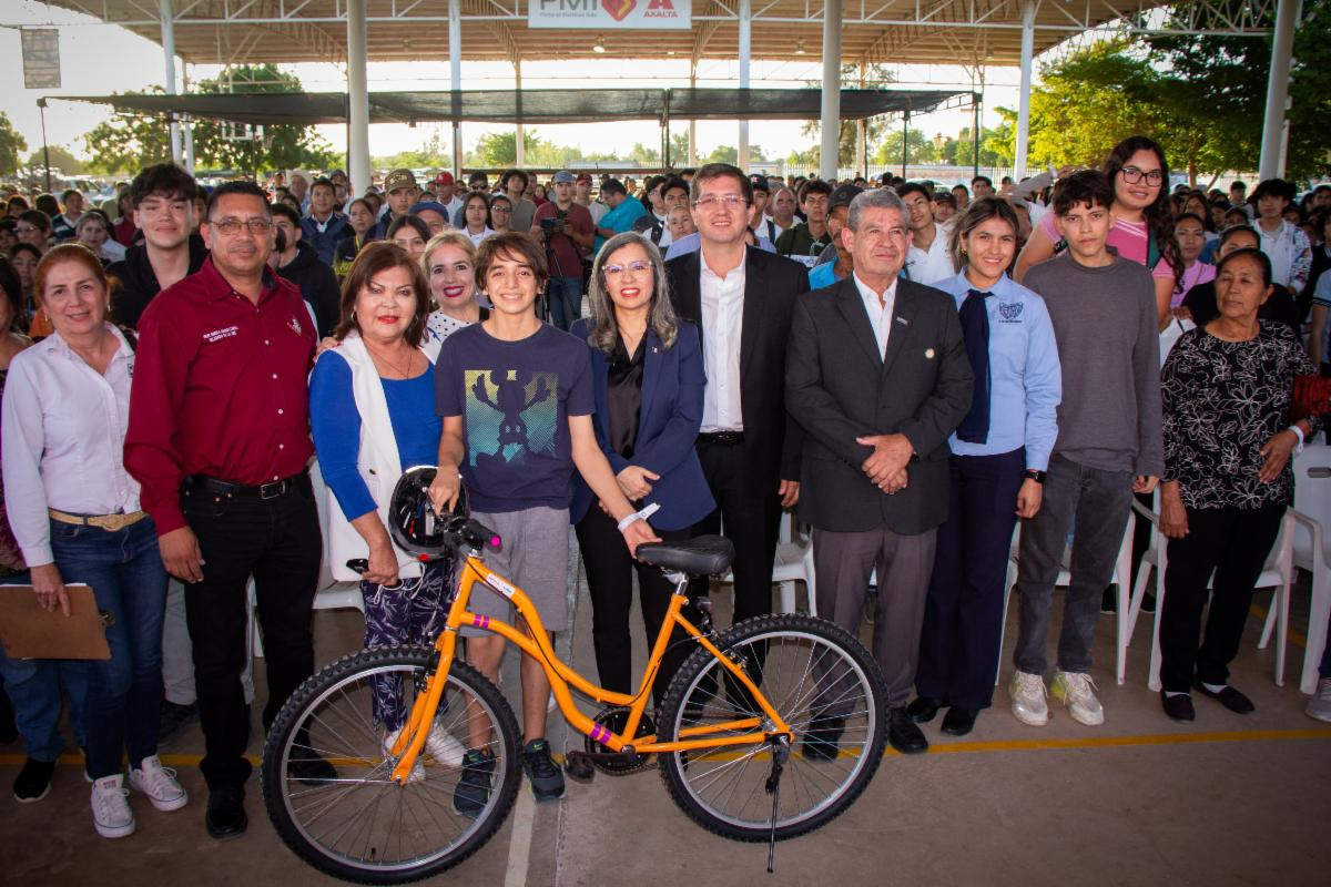Navojoa, Sonora.- Con el propósito de contribuir a la disminución de la deserción escolar mediante una movilidad sustentable, el Gobierno de Sonora, a través de la Secretaría de Desarrollo Social (Sedesson), hizo entrega de mil 383 bicicletas y cascos de seguridad a estudiantes mayores de 15 años y población vulnerable en el municipio de Navojoa.
