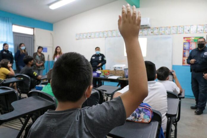 En un trabajo en equipo con personal del área de Prevención del Delito y Participación Ciudadana, oficiales D.A.R.E. de la Secretaría de Seguridad Pública Municipal, impartieron pláticas en prevención del delito a niñas, niños y adolescentes, visitando desde el nivel preescolar hasta la preparatoria en el sector de Villa Bonita.