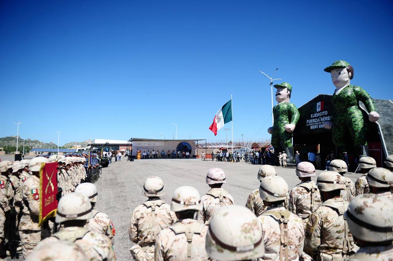 El gobernador Alfonso Durazo, en presencia de autoridades locales y estatales, inauguró la exposición militar “La Gran Fuerza de México”, con la cual, aseguró, la ciudadanía podrá tener un acercamiento con elementos del Ejército Mexicano, Fuerza Aérea, y Guardia Nacional, instituciones que tienen una gran aceptación entre la población.