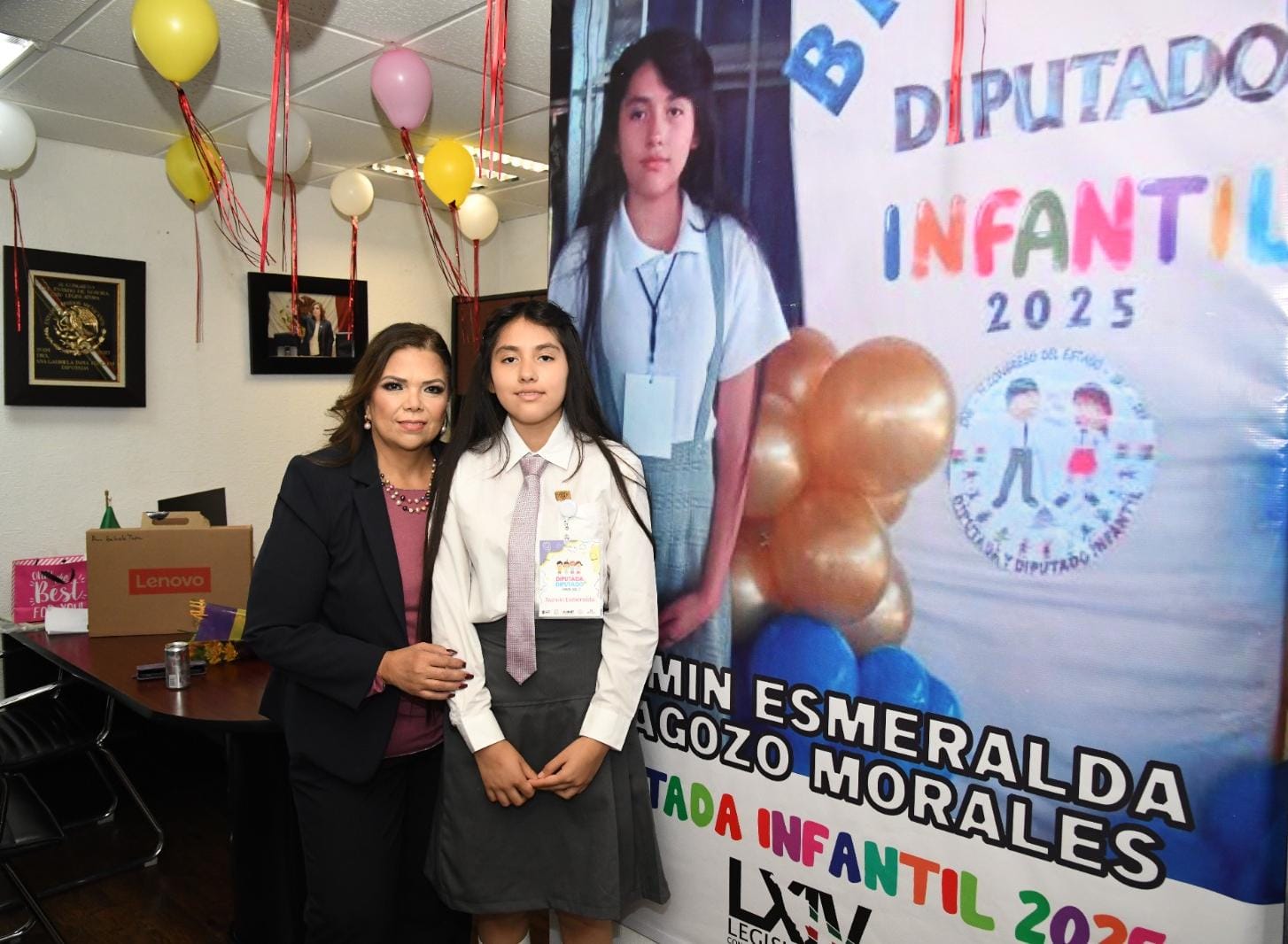 Jazmín Esmeralda, alumna de sexto grado en la escuela primaria Aquiles Serdán, fue seleccionada como diputada infantil gracias a su destacado promedio académico, superando a otros estudiantes sobresalientes del municipio en un proceso competitivo en tres etapas: escolar, zona y distrito.