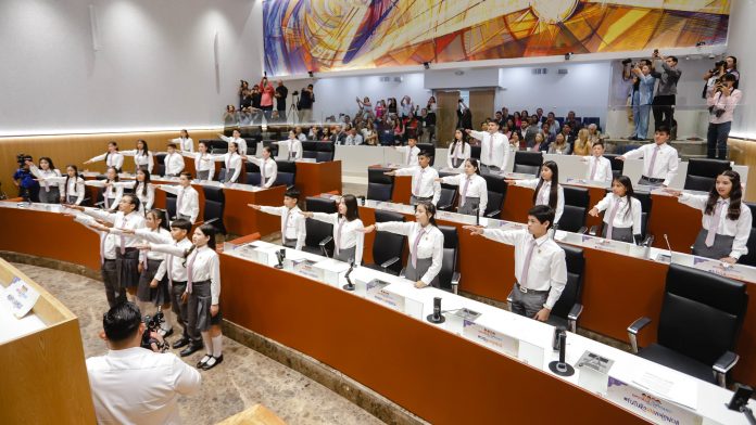 La bienvenida a las y los diputados infantiles se realizó en el recinto legislativo, seguida de la toma de protesta encabezada por el diputado Omar Francisco Del Valle Colosio (PVEM), presidente de la Mesa Directiva. Lo acompañarán Bernardeth Ruiz Romero, representante del titular del Poder Ejecutivo; Rosa Dolores López Carrión, magistrada del Supremo Tribunal de Justicia; Froylán Gámez Gamboa, secretario de Educación y Cultura; Nery Ruiz Arvizu, consejero presidente del Instituto Estatal Electoral; y Verónica Sandoval Castañeda, vocal ejecutiva del Instituto Nacional Electoral en Sonora.