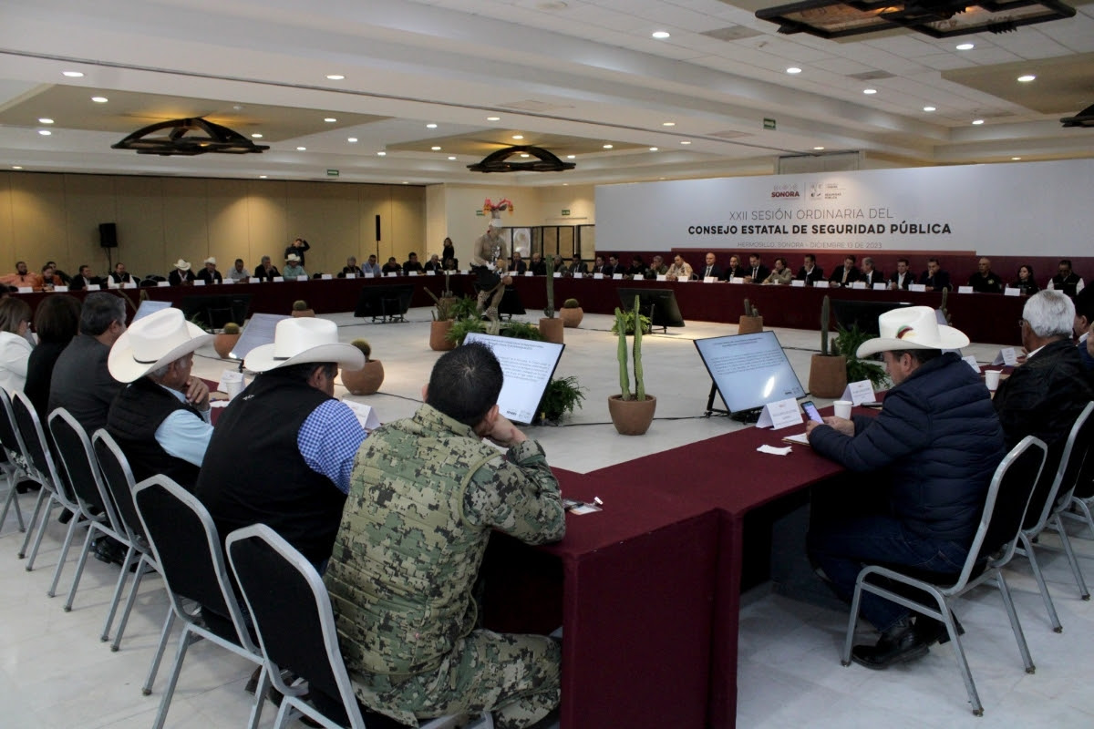 Hermosillo, Sonora.- El Gobierno de Sonora, los 72 municipios e instituciones de seguridad de los tres niveles refrendaron el compromiso de fortalecer para el 2024 el trabajo y coordinación de esfuerzos por un Sonora más seguro y la construcción de la paz en beneficio de las y los ciudadanos, durante la vigésima segunda sesión Ordinara del Consejo Estatal de Seguridad Pública.
