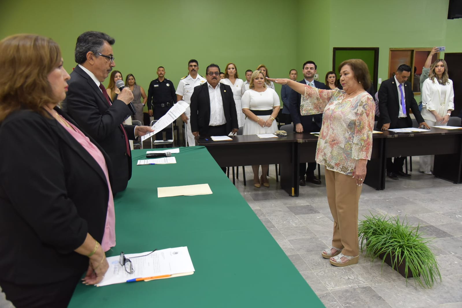 Tomando protesta Lucy Haydee Navarro Gallegos, como Secretaria del Ayuntamiento; Ivonne Sánchez Cornejo, Tesorera Municipal de Cajeme y Marina Herrera, Titular del Órgano de Control y Evaluación Gubernamental del Ayuntamiento de Cajeme.