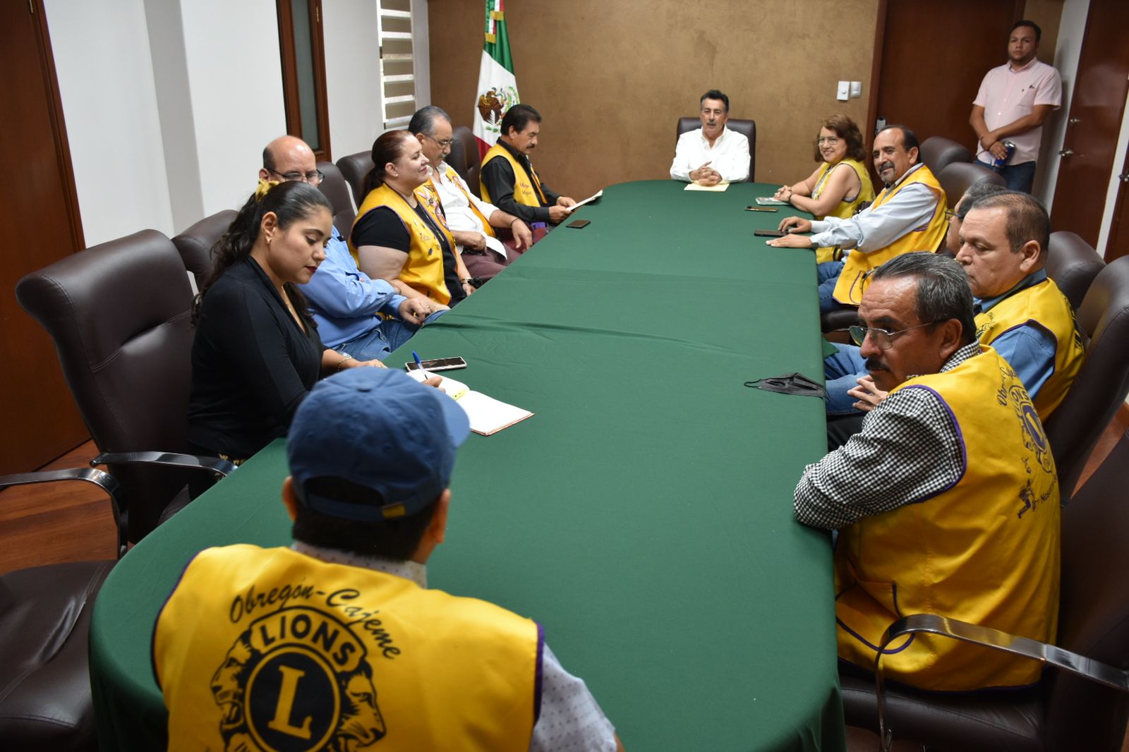 El Presidente Municipal agradeció a los Presidentes de los tres clubes de Leones que hay en ciudad Obregón, por la ayuda que proporcionan a las familias de escasos recursos y reconoció el trabajo desinteresado que efectúan para atender diversas problemáticas de índole social y tender puentes de colaboración mutua que incida en la resolución de las necesidades que plantean las familias cajemenses.