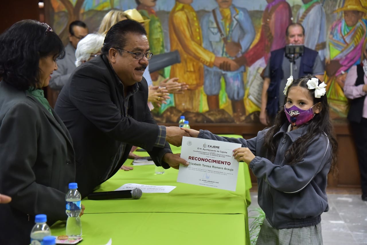 En representación del Alcalde Javier Lamarque Cano, el coordinador de Identidad y Formación Ciudadana, Fernando González Meza detalló que este concurso se promovió con el objetivo de difundir, fomentar e impulsar la creatividad narrativa en la niñez cajemense y, al mismo tiempo, desarrollar la habilidad en la redacción, donde participaron 13 niñas y niños y sus correspondientes asesores.