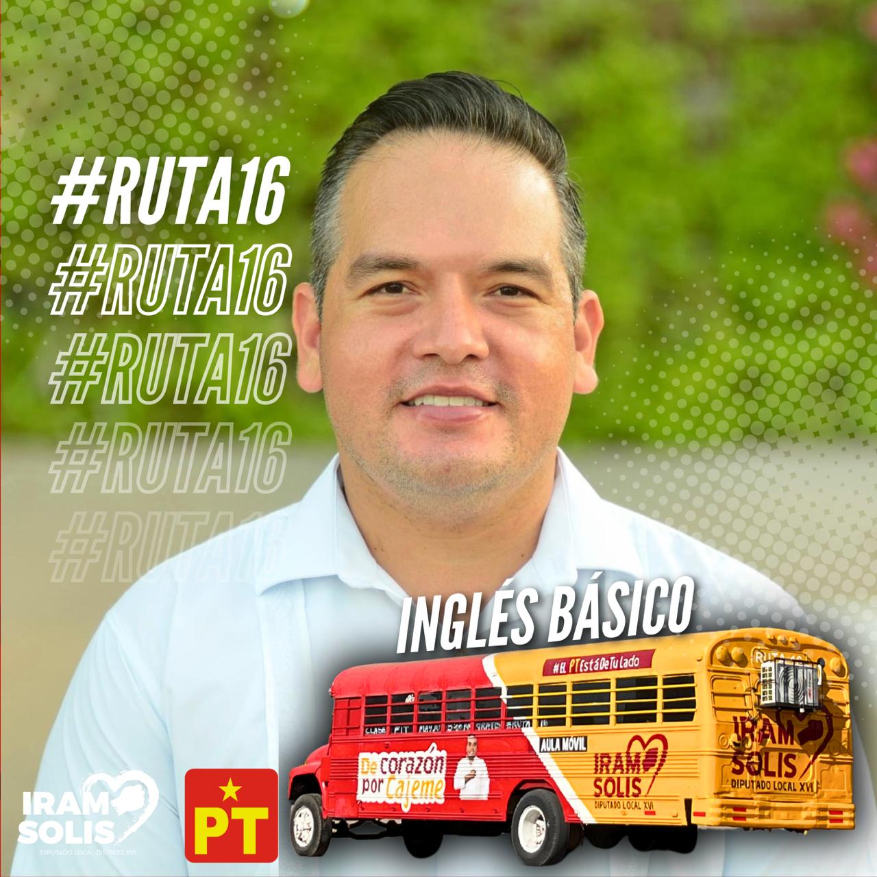 Cajeme, Sonora.- Con el fin de promover la educación de las y los cajemenses, el diputado local por el Partido del Trabajo, Iram Solís, anunció la continuación del exitoso programa de servicios comunitarios ofrecidos a través del camión #Ruta16, con la oferta de clases de inglés.
