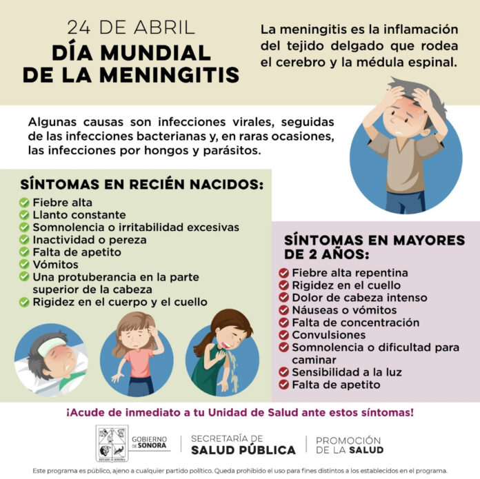 Hermosillo, Sonora.- La meningitis es una enfermedad causada por infecciones virales, hongos o parásitos, ante esto la Secretaría de Salud (SSA), en el Día Mundial Contra la Meningitis, hizo un llamado a la concientización sobre este padecimiento que es tratado en los hospitales de la institución.
