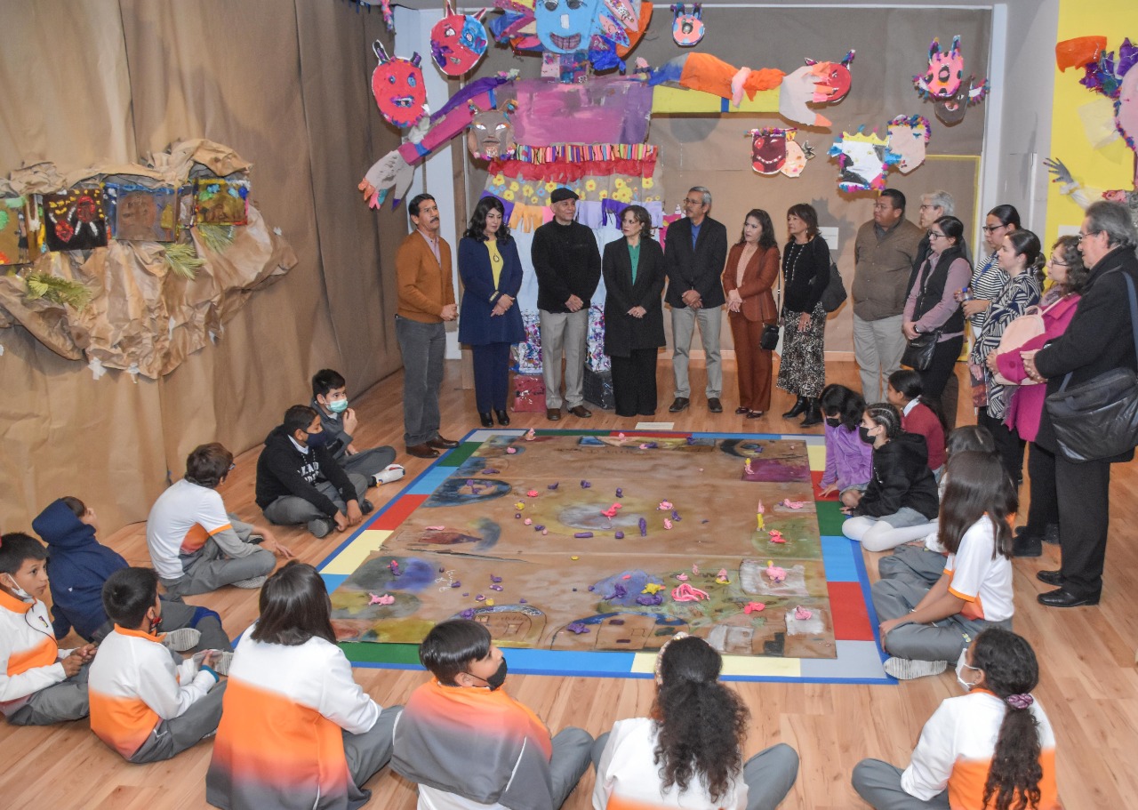 Hermosillo, Sonora.- El lunes 16 de enero se inauguró, en la Casa de la Cultura de Sonora, la exposición plástica infantil “La Armonía del Caos”, que presenta obras producto del taller “Formas y Colores de la Infancia” en el que participaron estudiantes de quinto y sexto de primaria de la escuela Profesor Lázaro Mercado, en una iniciativa propuesta y promovida por la Fiscalía General de Justicia del Estado de Sonora.